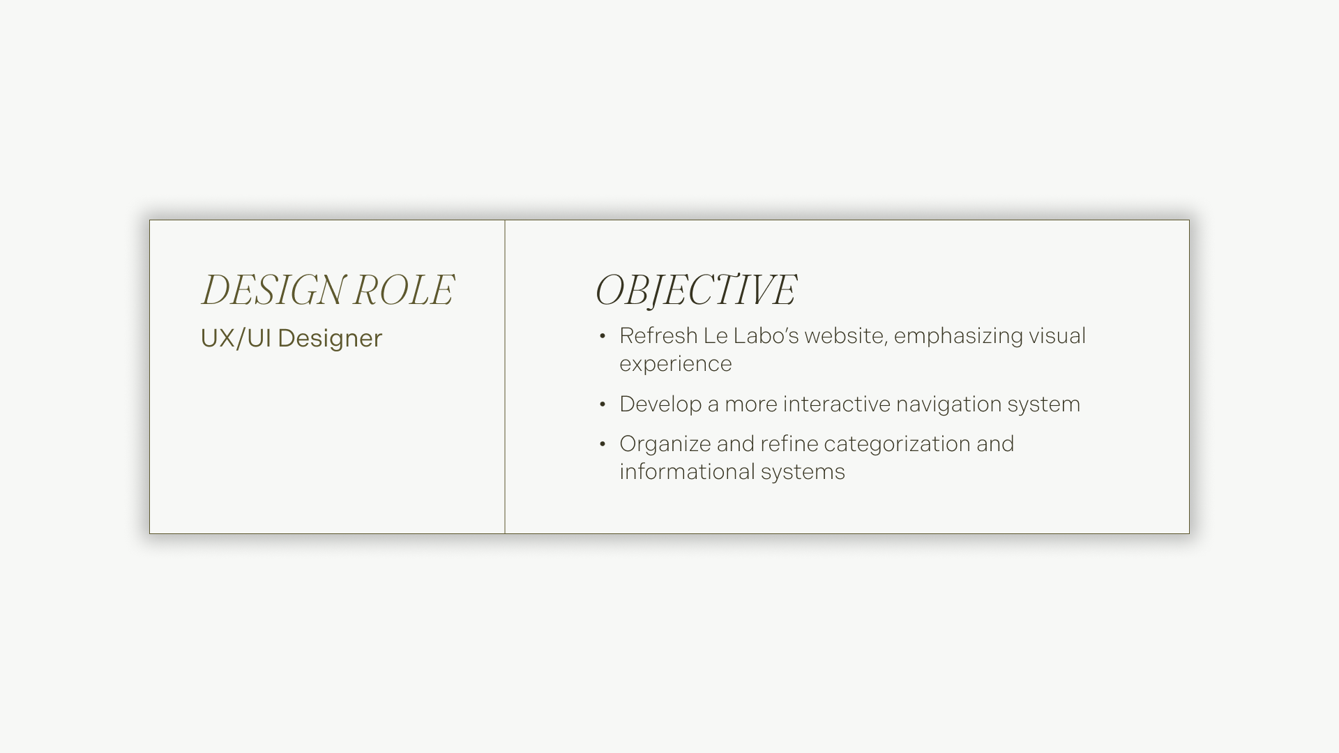 objective: redesign le labo's website into a visual and interactive experience for consumers.